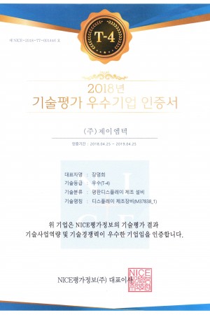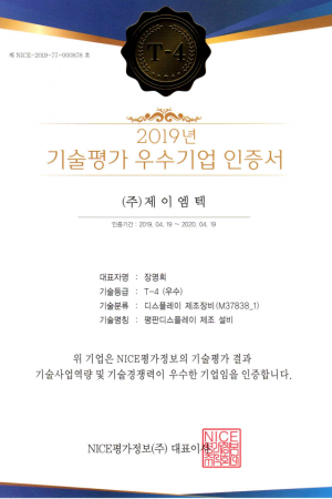 2019년 3년 연속 NICE평가정보 기술평가 우수기업 선정