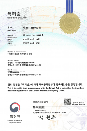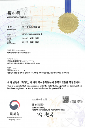 이차전지제조용 제조장비[히팅롤러]특허증 제10-1992280호